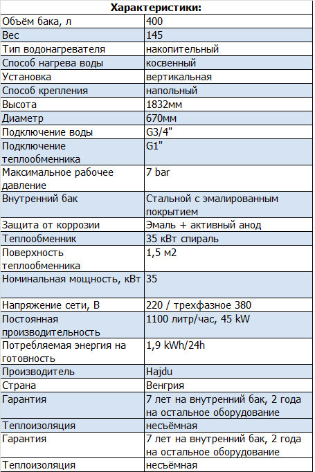 Каждый водонагреватель Хайду снабжён патрубками для размещения элементов управления работой нижнего и верхнего теплообменника, патрубком для монтажа термометра, а также с циркуляционным патрубком. Накопительный бойлер для закрытой системы, можно использовать для обеспечения горячей водой нескольких точек водозабора. Полученная горячая пригодна для пищевых целей, и для умывания.