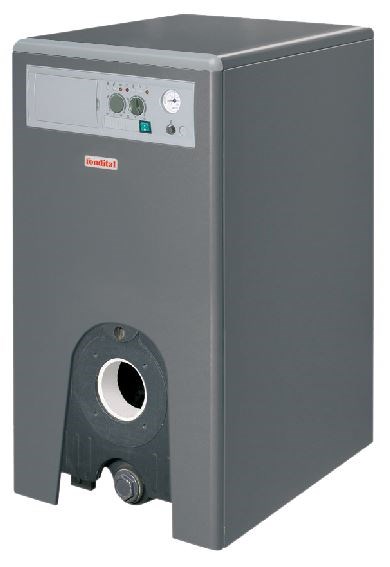 Чугунный напольный котел, предназначенный для работы с дизельной или газовой горелкой, которые могут быть приобретены отдельно, адаптирован для систем бытового отопления. Котел снабжен улучшенной системой изоляции для снижения потерь тепла.